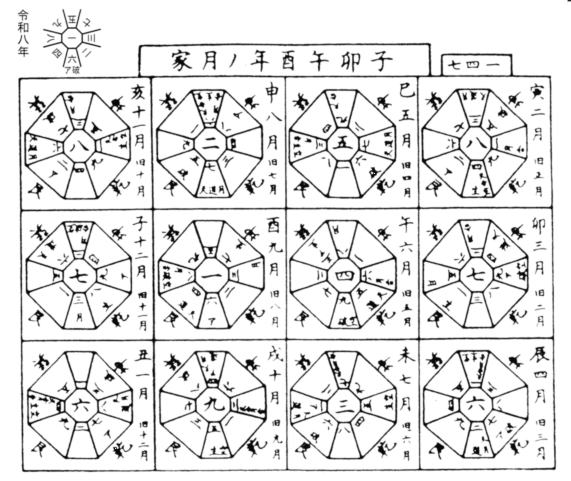 気学の研究には絶対欠くことの出来ないその年の暦です。