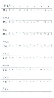 方位便覧の内容のほか、毎日の干支九星・刻盤が記載されています。